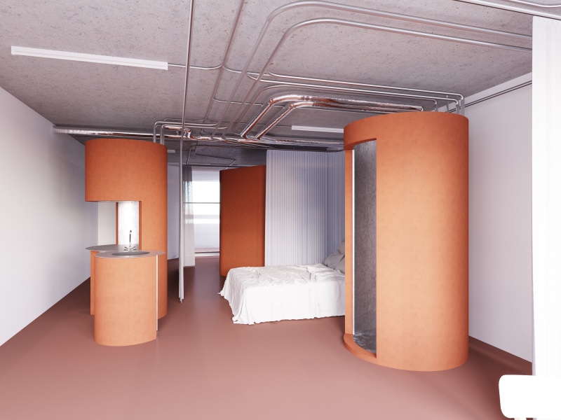 Das baubüro in situ verwandelt das oberste Geschoss mit minimalen Eingriffen in Kleinstwohnungen. Dabei bleiben die bestehende Raumstruktur und Erschliessung erhalten. Neue Nasszellen aus Re-Use-Materialien zonieren die Wohnunge- nin öffentliche und private Bereiche – ein zirkulärer Umbau mit maximaler Bestandserhaltung.